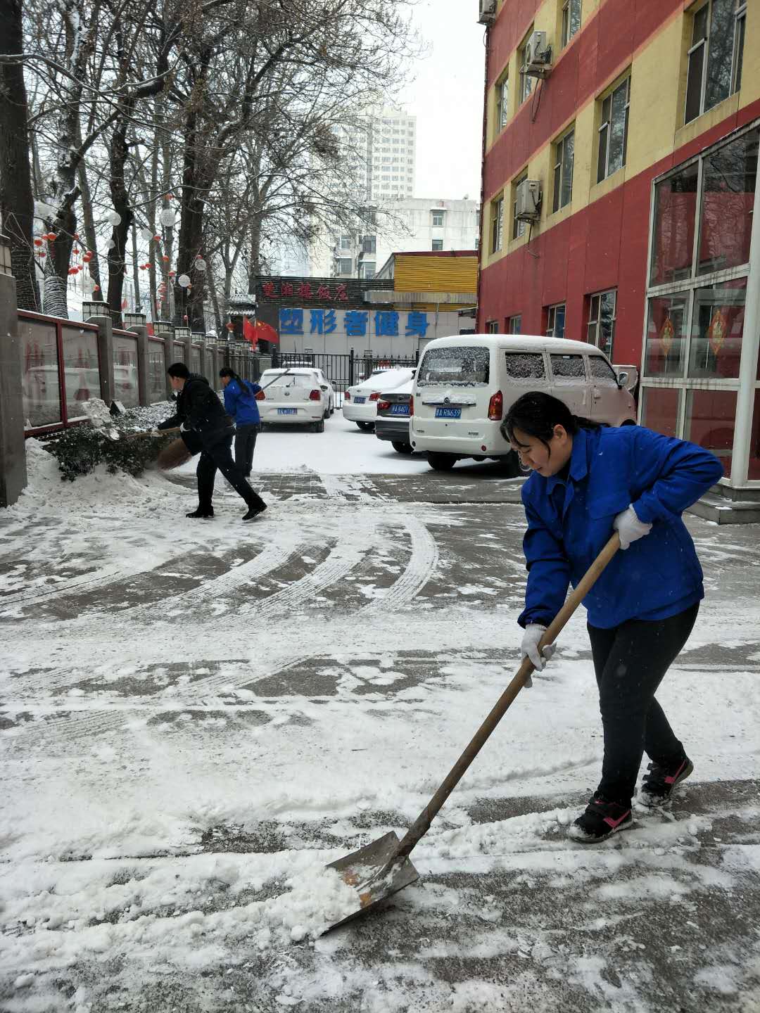 為保障大家出行安全,認真鏟除地面殘冰。