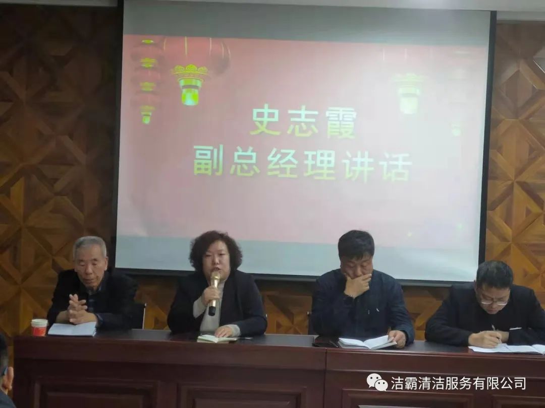 最后,公司總經(jīng)理程晉軍作了重要講話,對新的一年里組織架構(gòu)、產(chǎn)教融合、建立洗衣廠、創(chuàng)建勞務(wù)品牌、建立大運營中心、工程部市場化運作、技能培訓(xùn)、提高用工人數(shù)、承包養(yǎng)老院、建立客戶管理系統(tǒng)等十項工作作了安排部署并提出了新的希望。