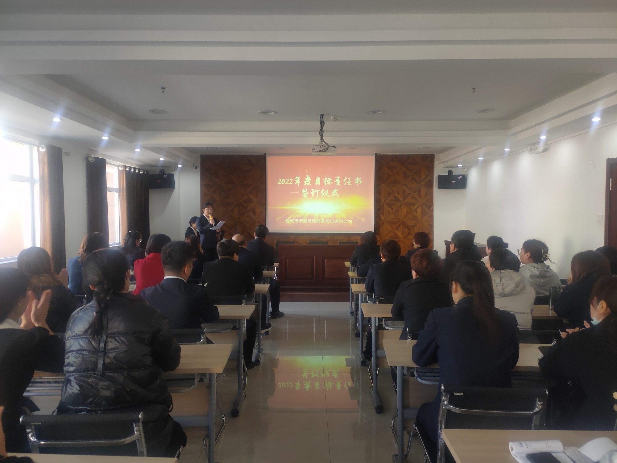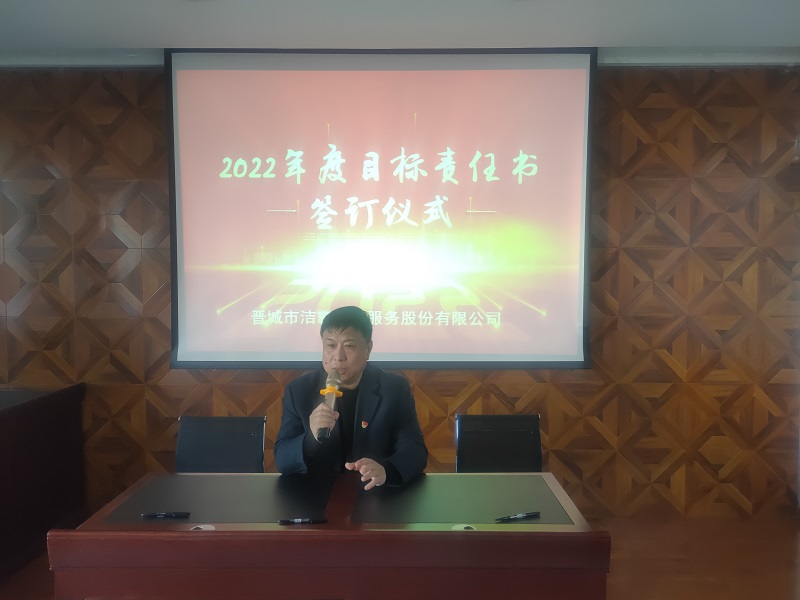 為落實公司2022年工作會議精神,進一步壓實責(zé)任,確保年度工作目標(biāo)的順利完成, 3月1日下午,晉城市潔霸清潔服務(wù)股份有限公司在活動中心組織召開2022年度目標(biāo)責(zé)任書簽訂會議。公司黨支部書記、總經(jīng)理程晉軍,副總經(jīng)理張永智、史志霞,經(jīng)理助理,各子公司、分公司、部門經(jīng)理及項目負責(zé)人、主管等參加會議。