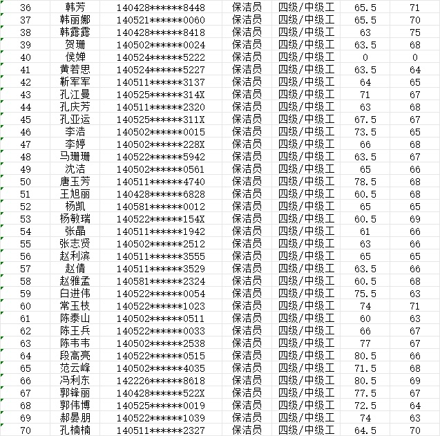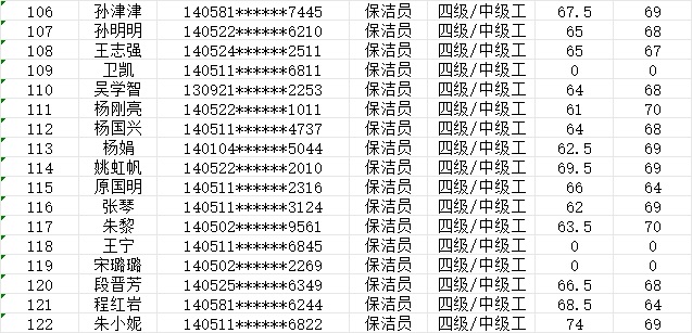 晉城市潔霸清潔服務股份有限公司職業(yè)技能等級認定中心現(xiàn)將2024年1月20日認定人員成績公示如下: