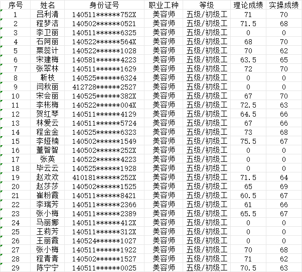 2024年9月21日第9批美容師初級認定人員成績公示